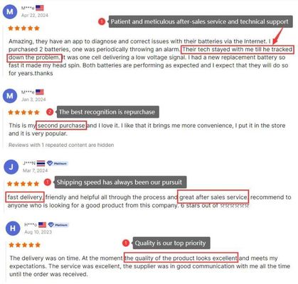 بسبب الحفاظ علىمعدل إعادة الشراء أكثر من 90%، ومعدل التسليم في الوقت المحدد 99.5٪، وتلقي98% ردود فعل إيجابيةckمن قبل علي بابا، لقد تلقيناتوصية علي بابا